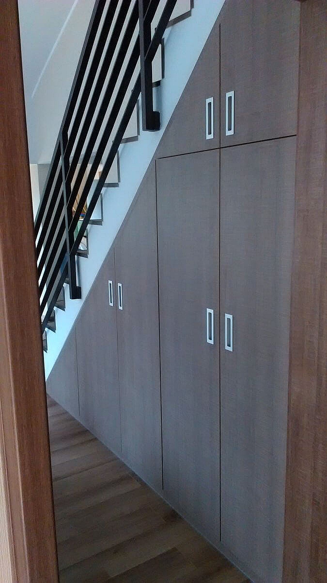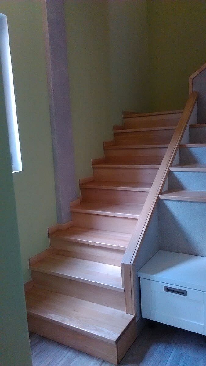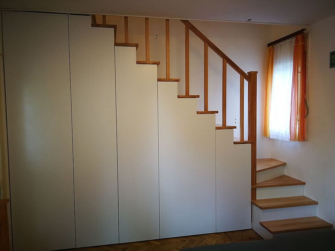 Balatonvilágosra készítettük ezt a bükkfa borítású lépcsőszekrényt
