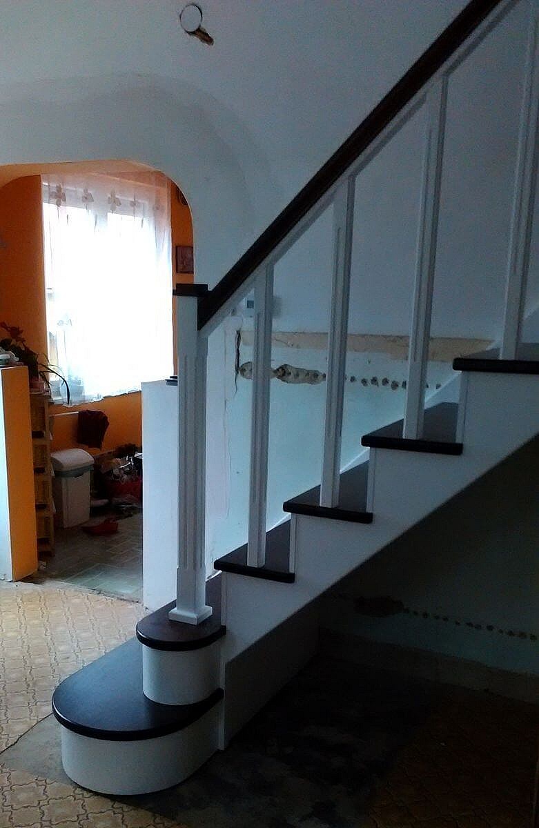 Vintage fehér antikolt tölgyfa korláttal söét barna lépcső