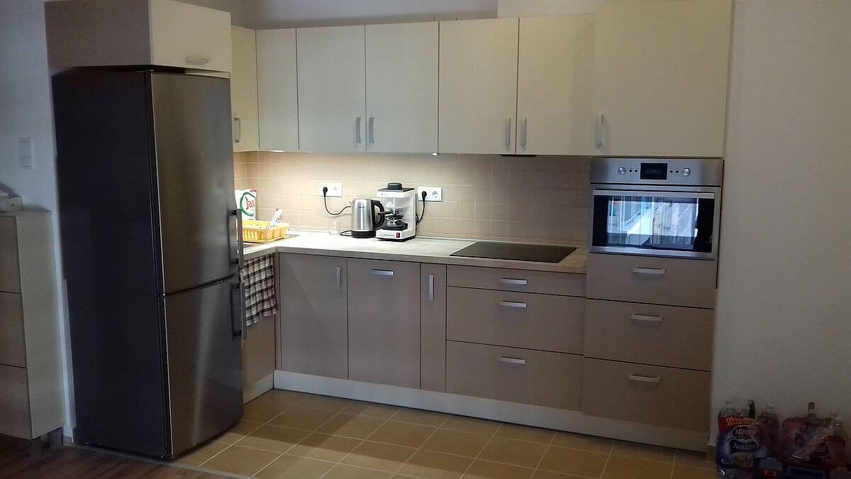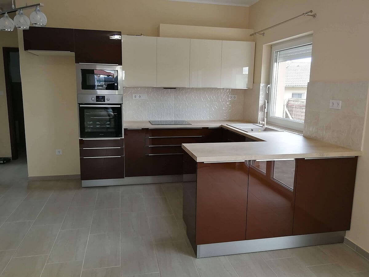 Siófoki társasházi nyaralóba késztettük ezt a modern konyhabútort