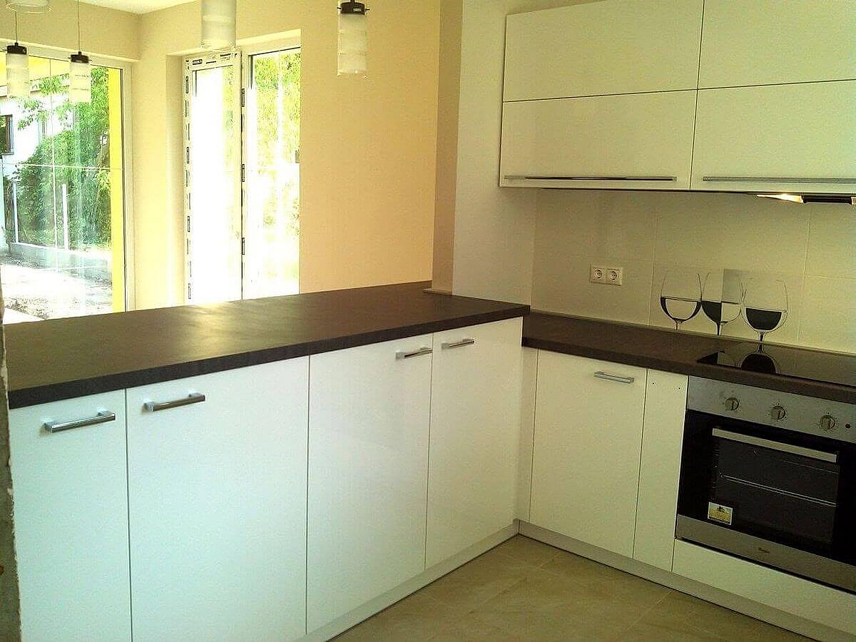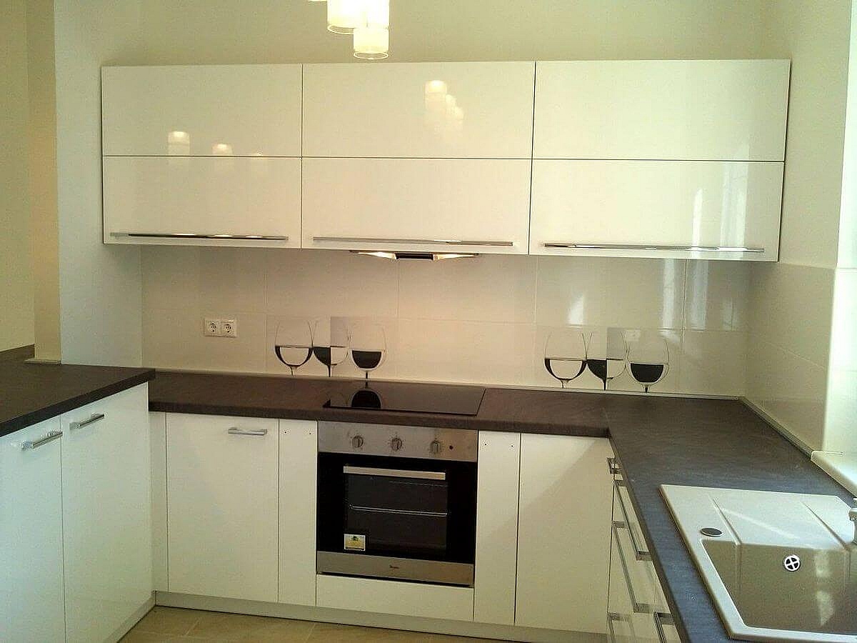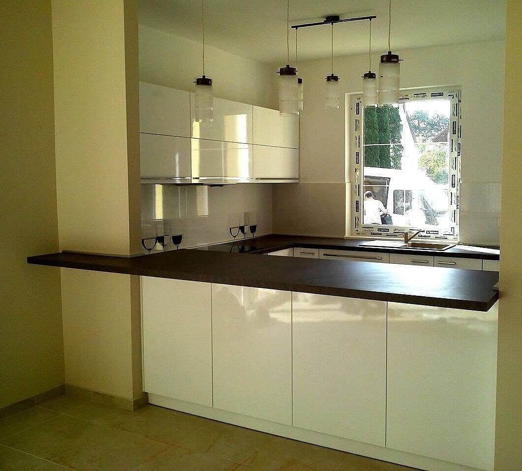 Budapestre egy kicsi lakásba készítettük ezt a fényes fehér modern konyhabútort