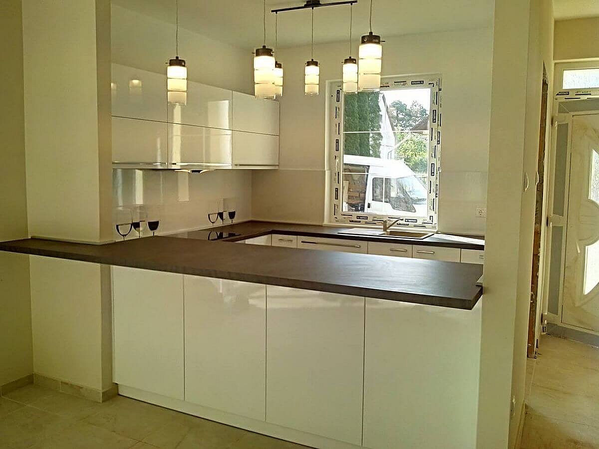 Balatonvilágosra készítettünk ezt a Fehér Acryl ajtós konyhabútort