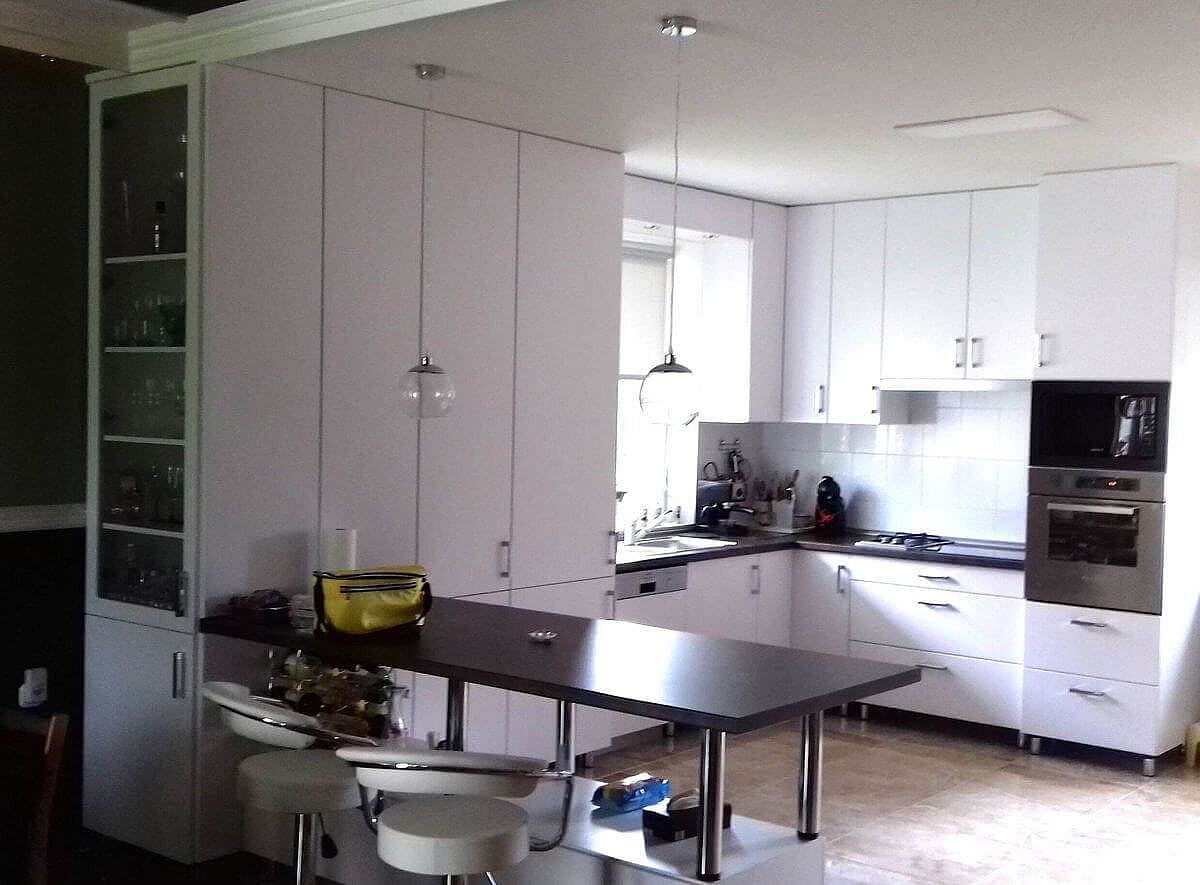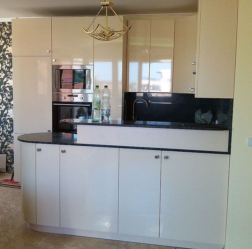 Siófokra készítettük ezt a festett fehér modern konyhabútort