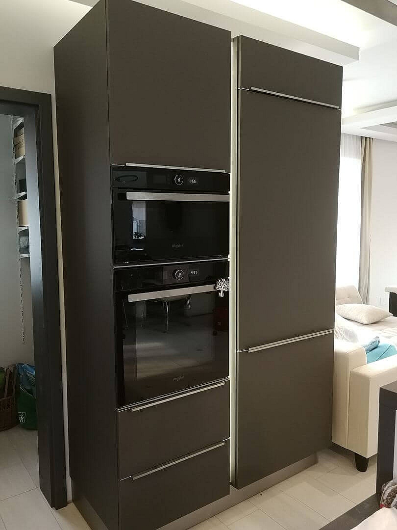 Matt akril ajtós konyhabútor Fekete Gola fogóprofillal