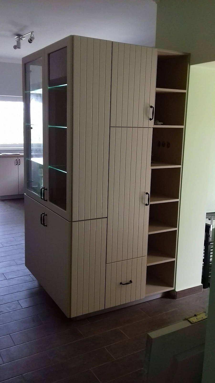 Nagyon jó karakteres lett a fekete takaró a felső szekrényen