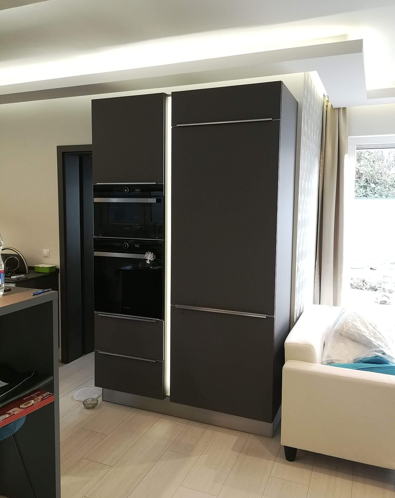 Nagyon jó karakteres lett a fekete takaró a felső szekrényen