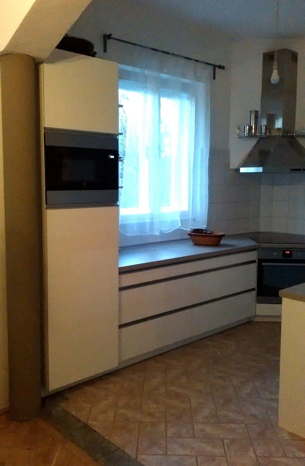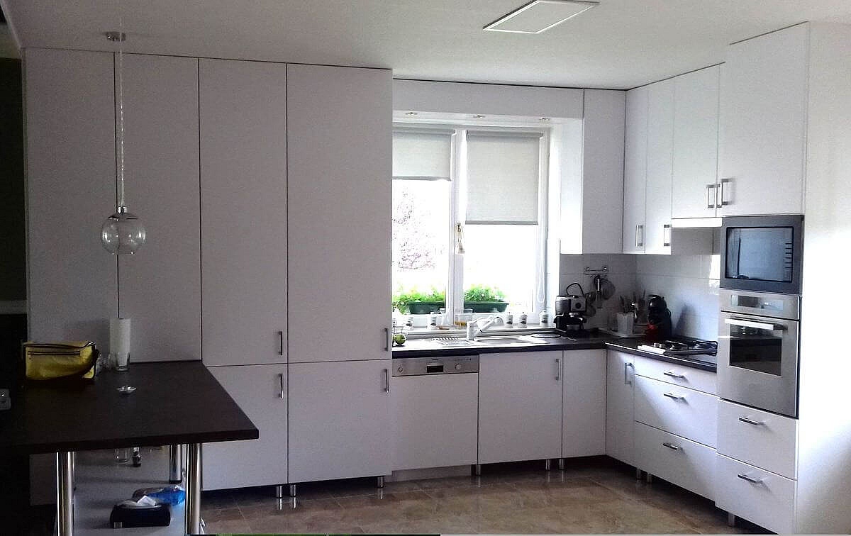Konyhabútor siófoki családi házba Matt szürke és fehér színben