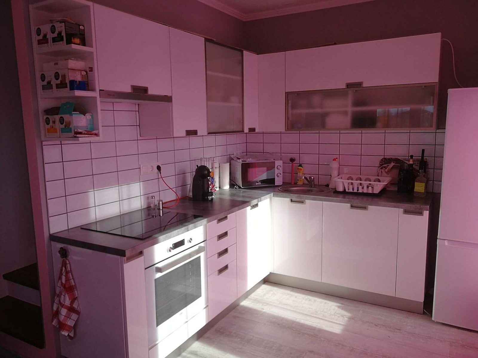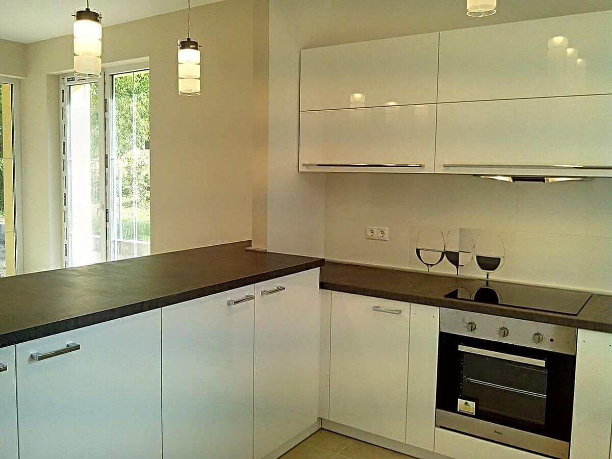 Balatonvilágosra készítettünk ezt a Fehér Acryl ajtós konyhabútort