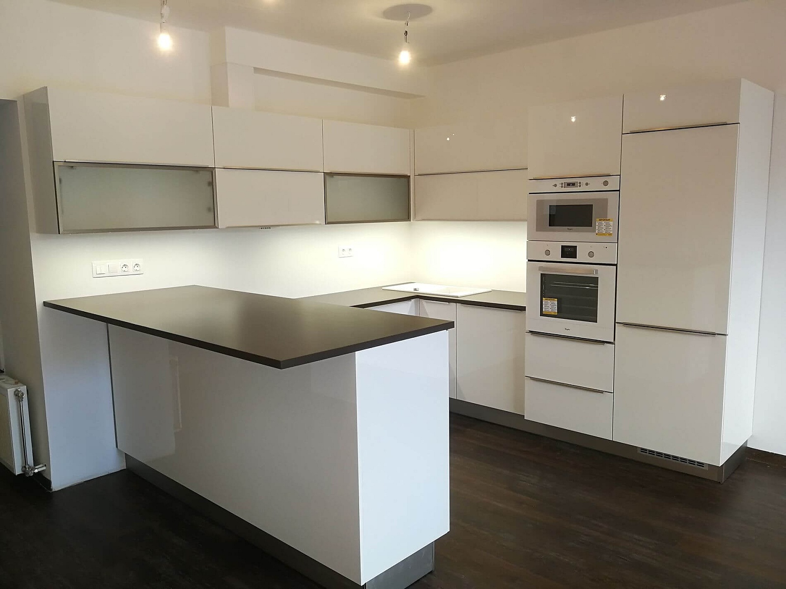 Budapestre egy kicsi lakásba készítettük ezt a fényes fehér modern konyhabútort
