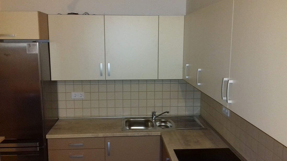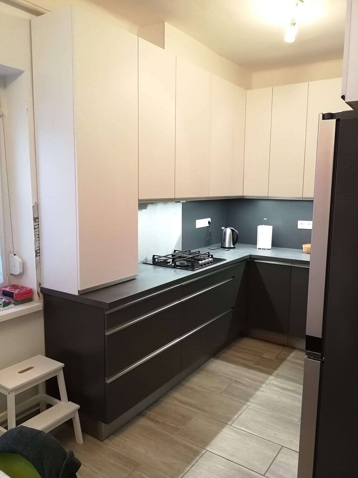 Siófoki társasházi nyaralóba késztettük ezt a modern konyhabútort