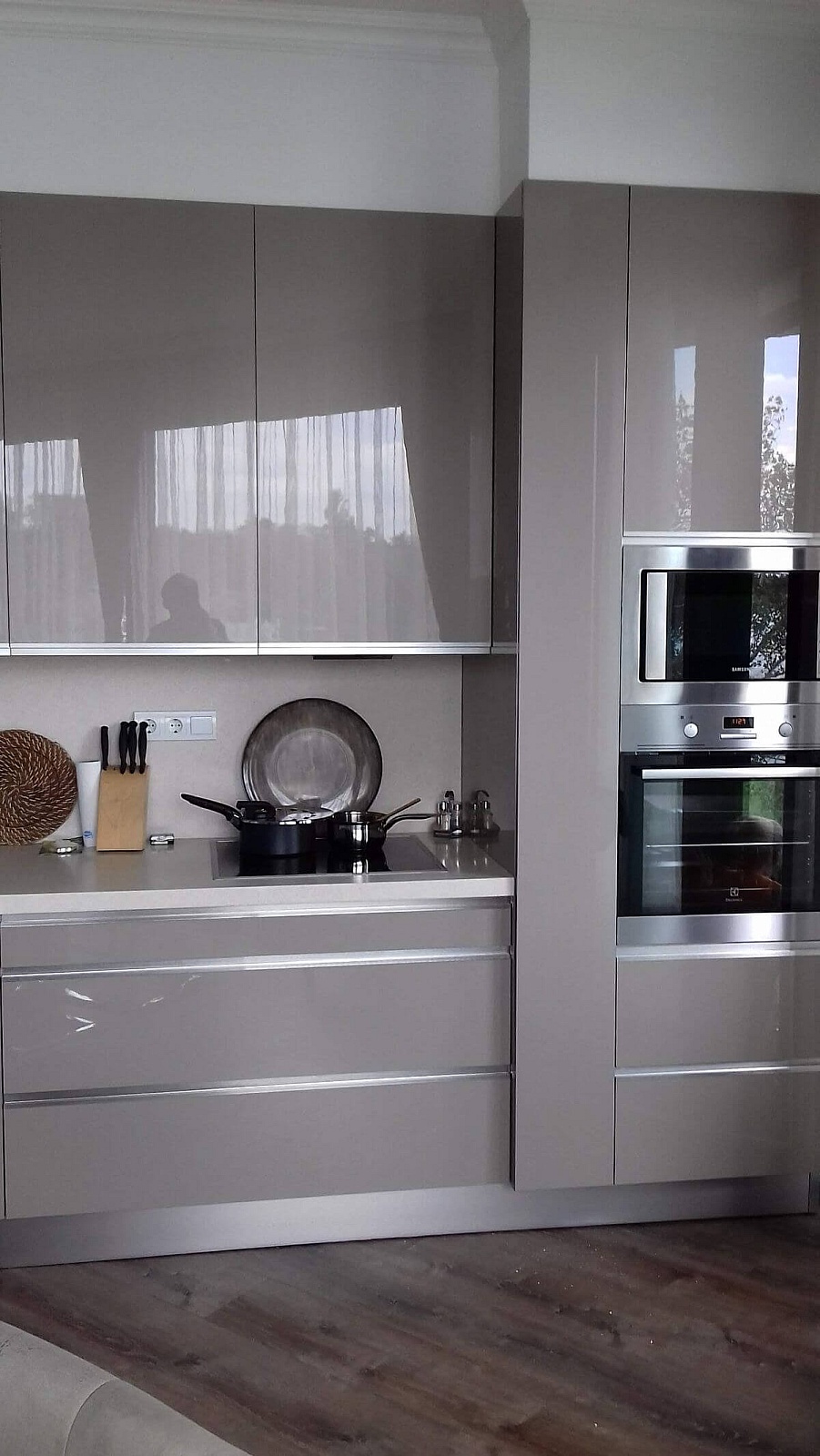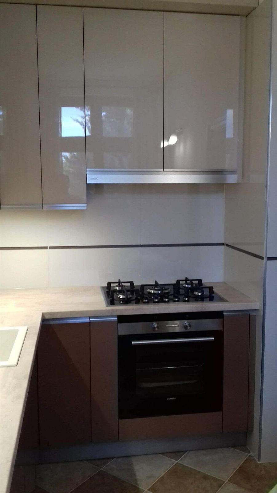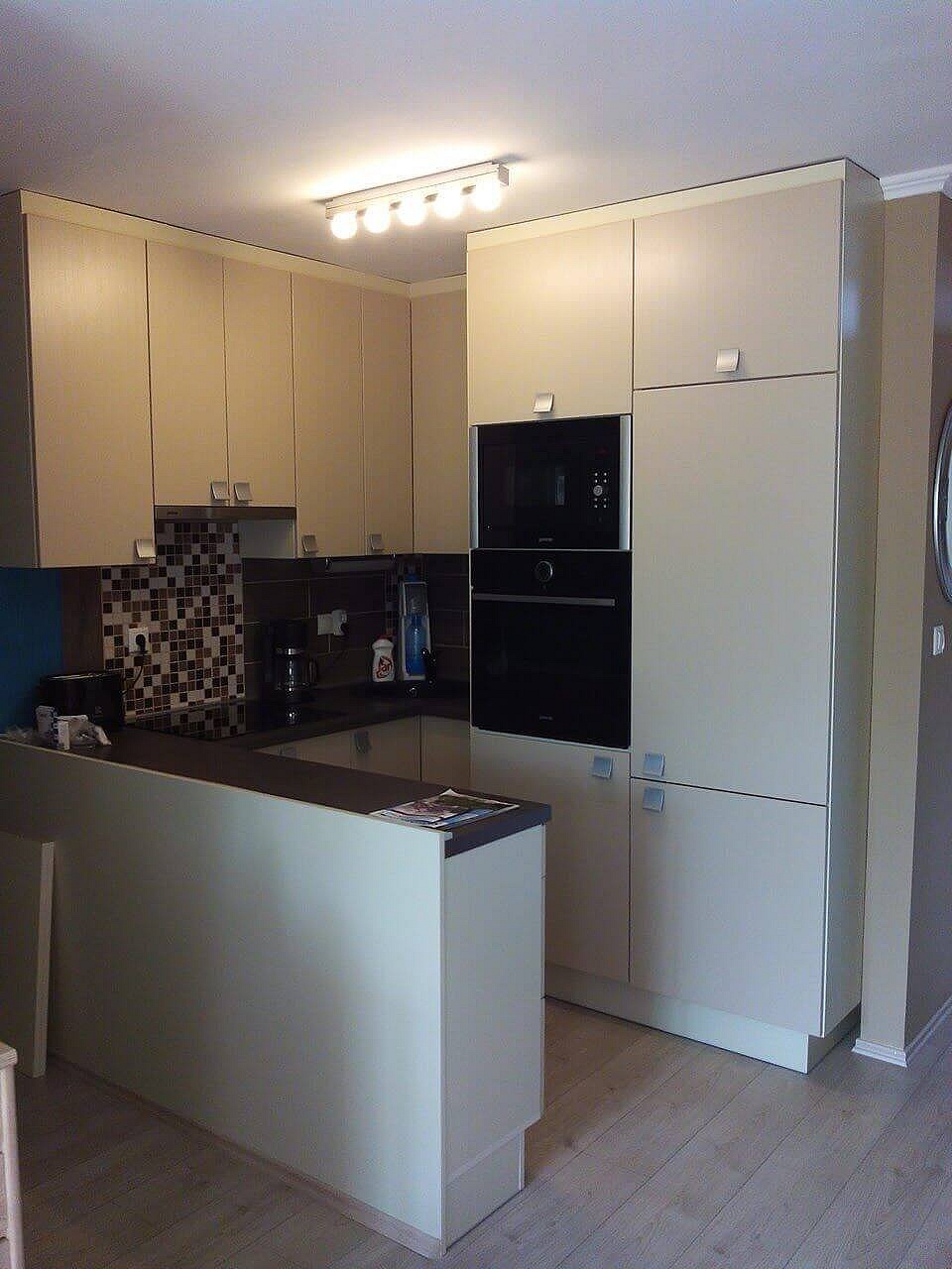 Modern beige akril ajtós modern konyhabútor élprofilos fogantyúval