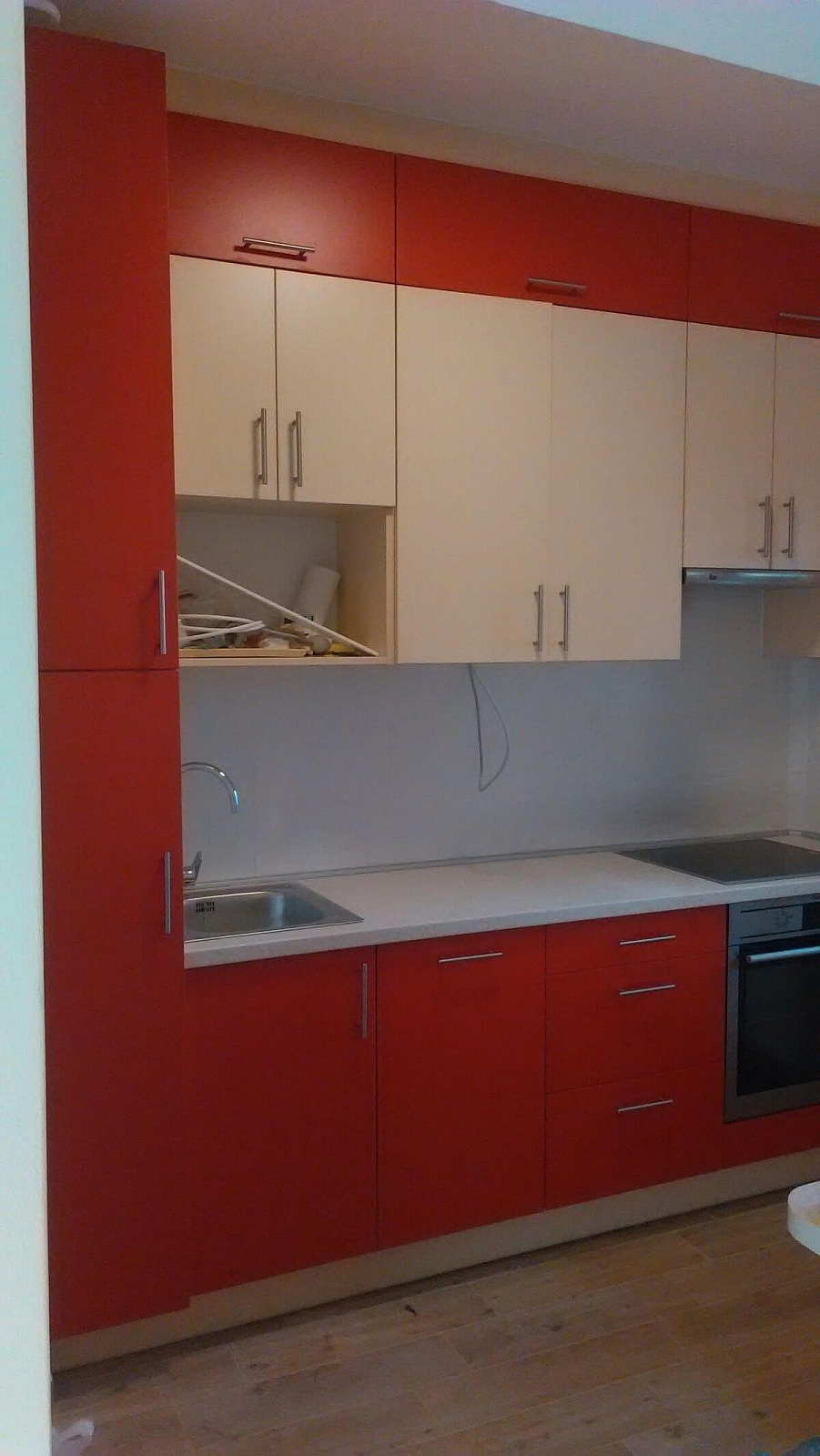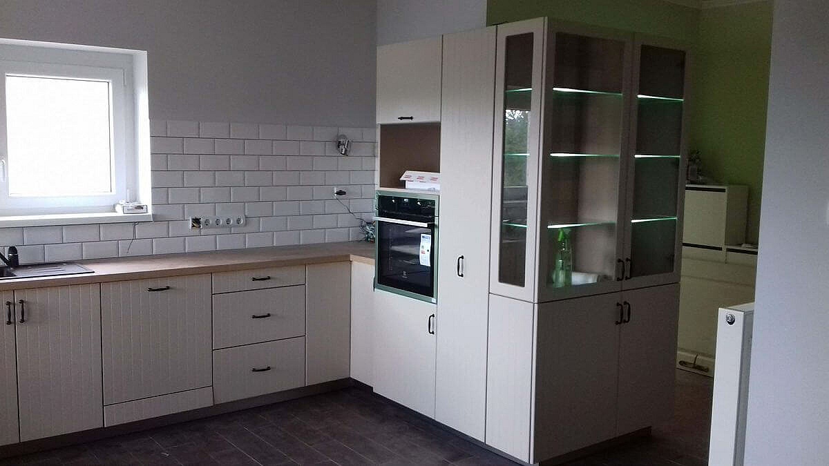 Siófokra készítettük ezt a festett fehér modern konyhabútort