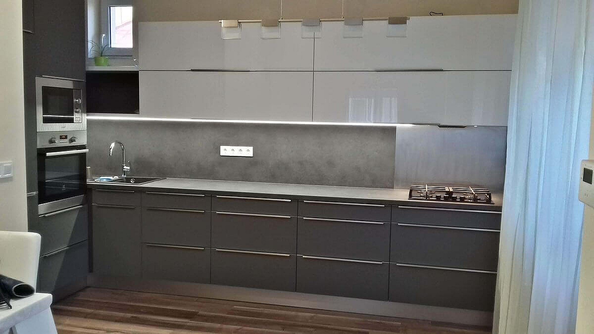 Visszatérő vevőnk új lakásába készítettük ezt a modern konyhabútort