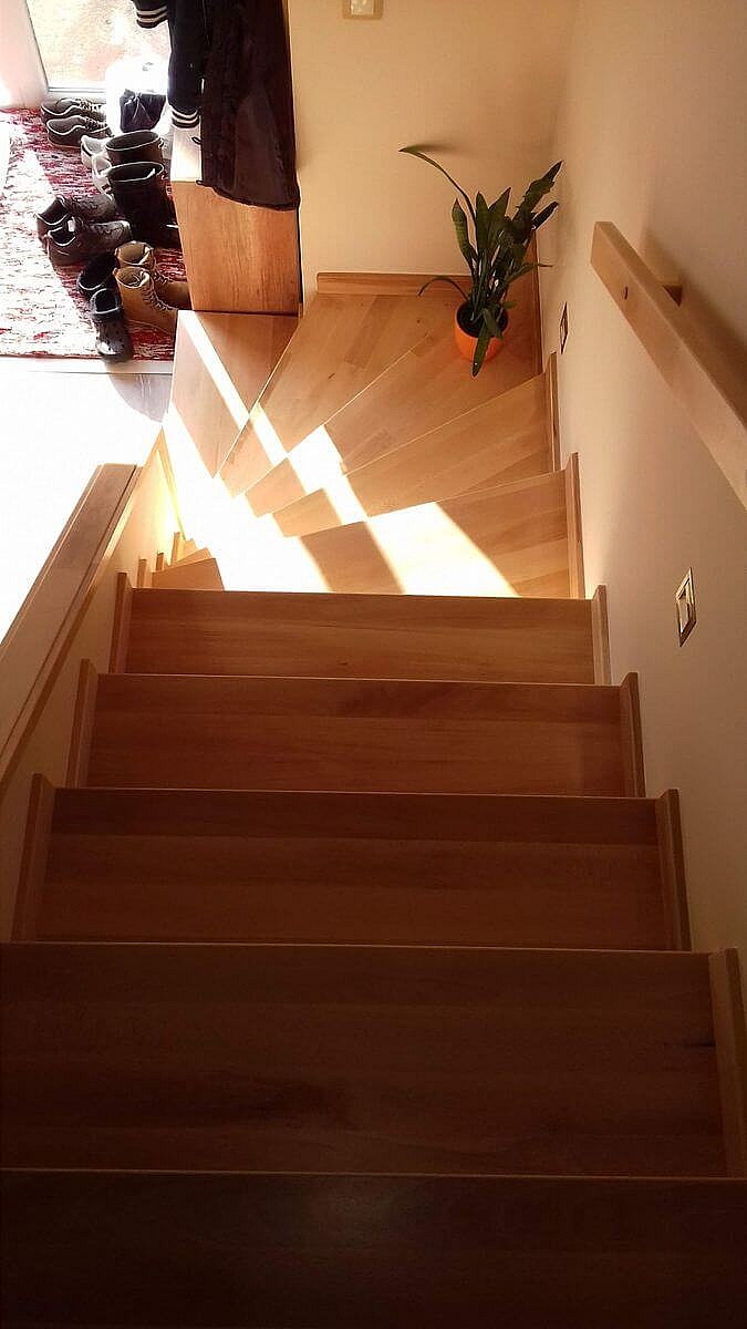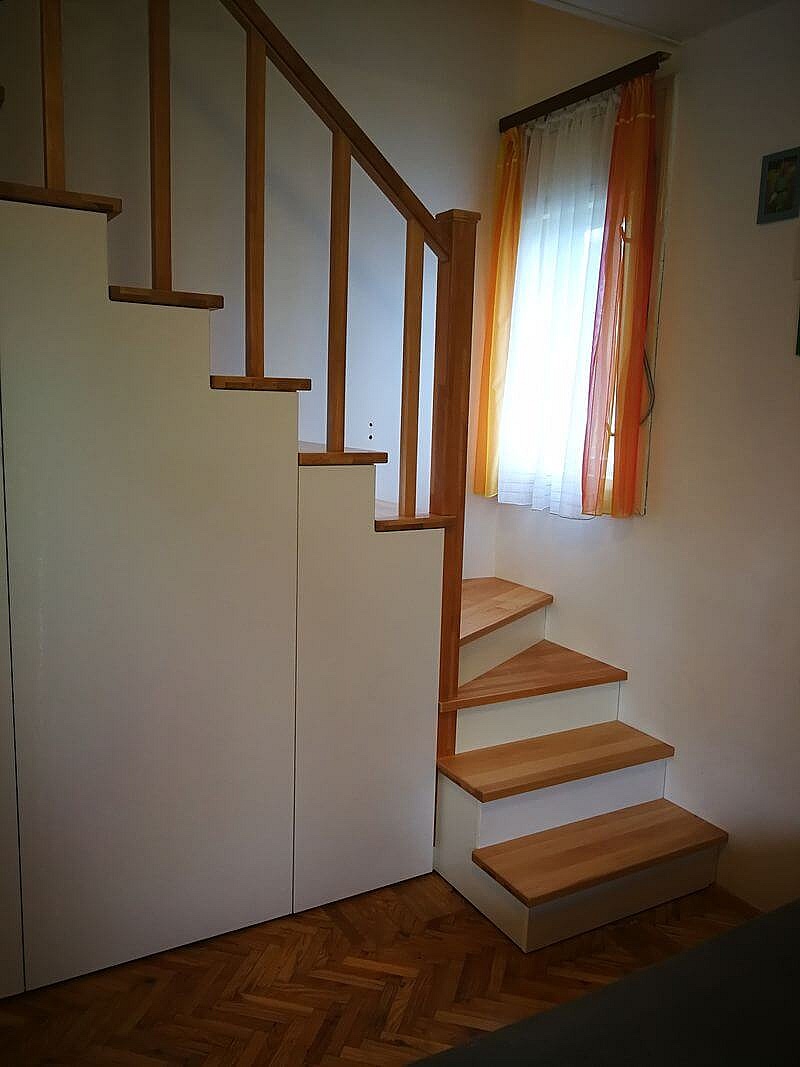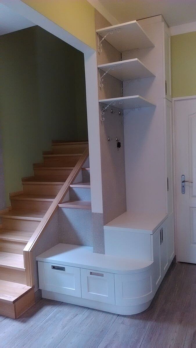 Balatonvilágosra készítettük ezt a bükkfa borítású lépcsőszekrényt