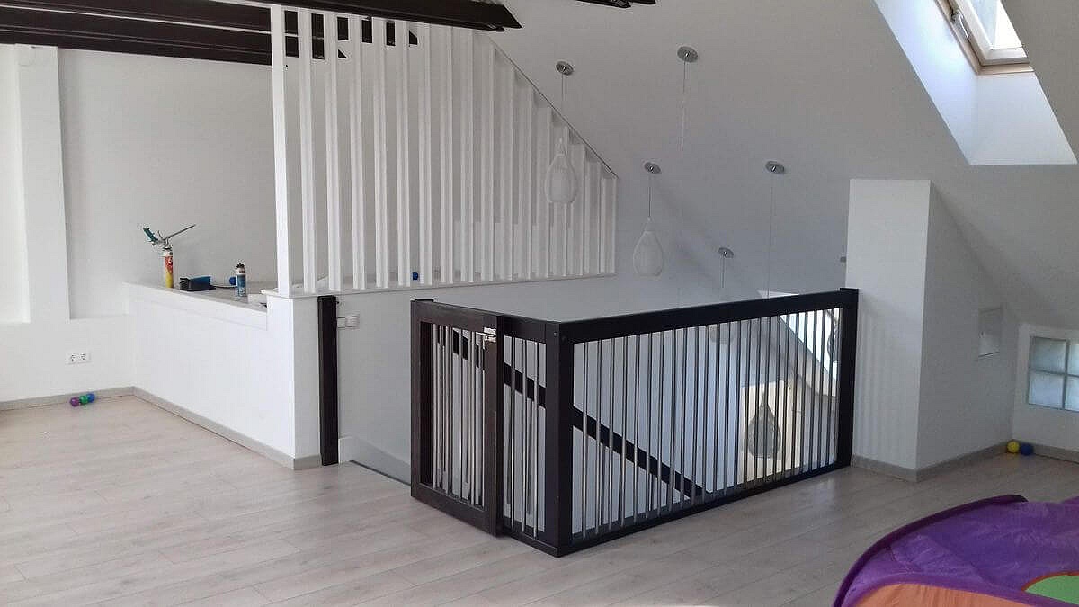 Vintage fehér antikolt tölgyfa korláttal söét barna lépcső